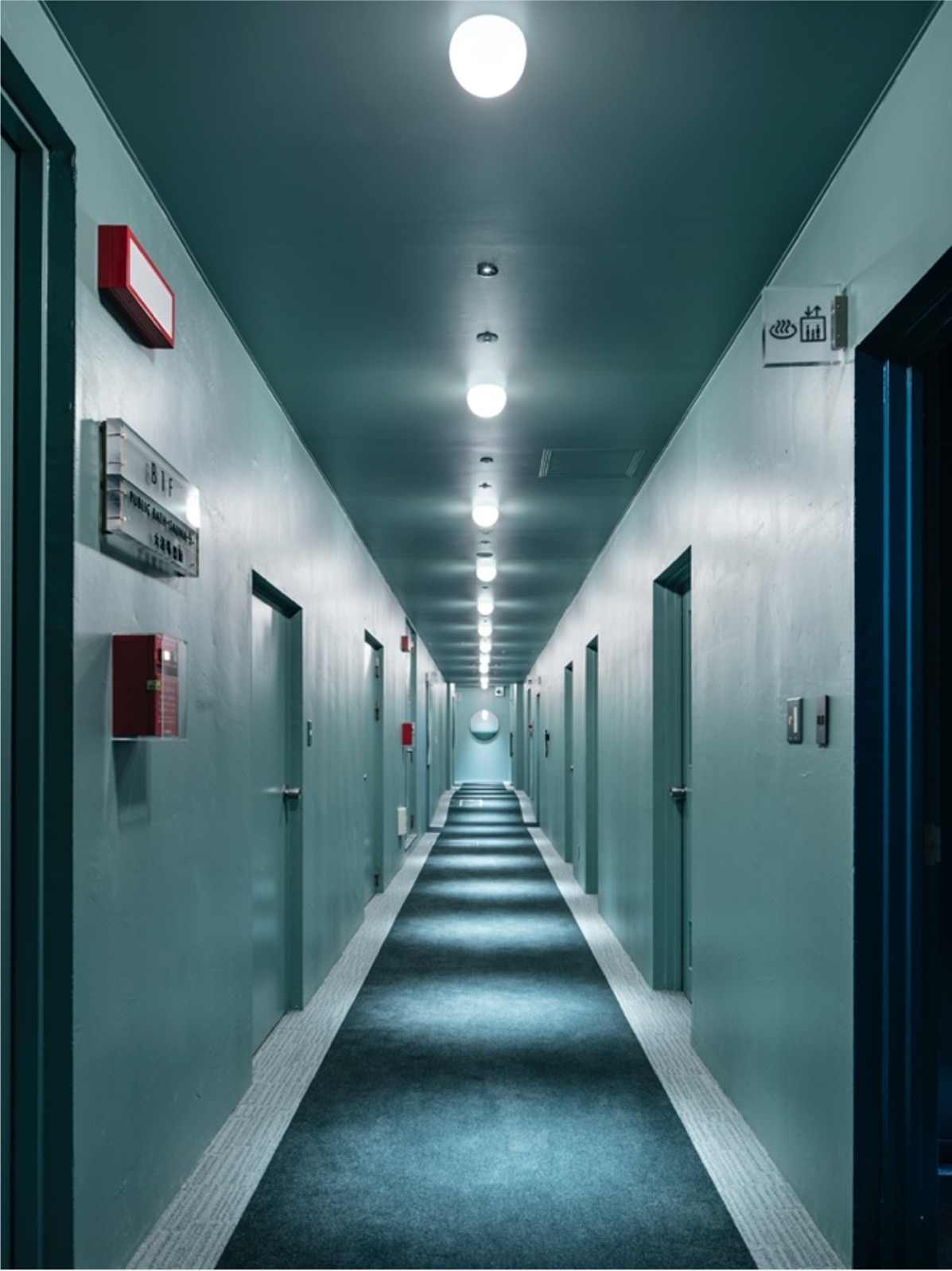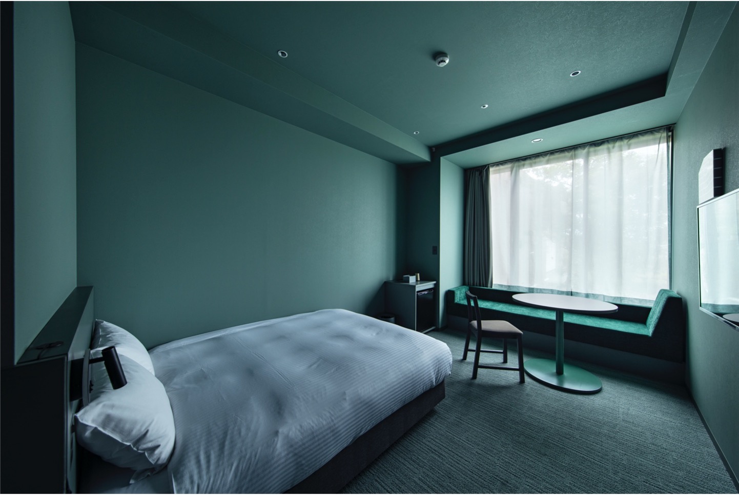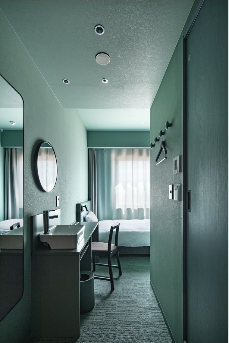 エントランスとは対照的に、新設客室や大浴場は緑色系とし落ち着いた雰囲気を演出した。