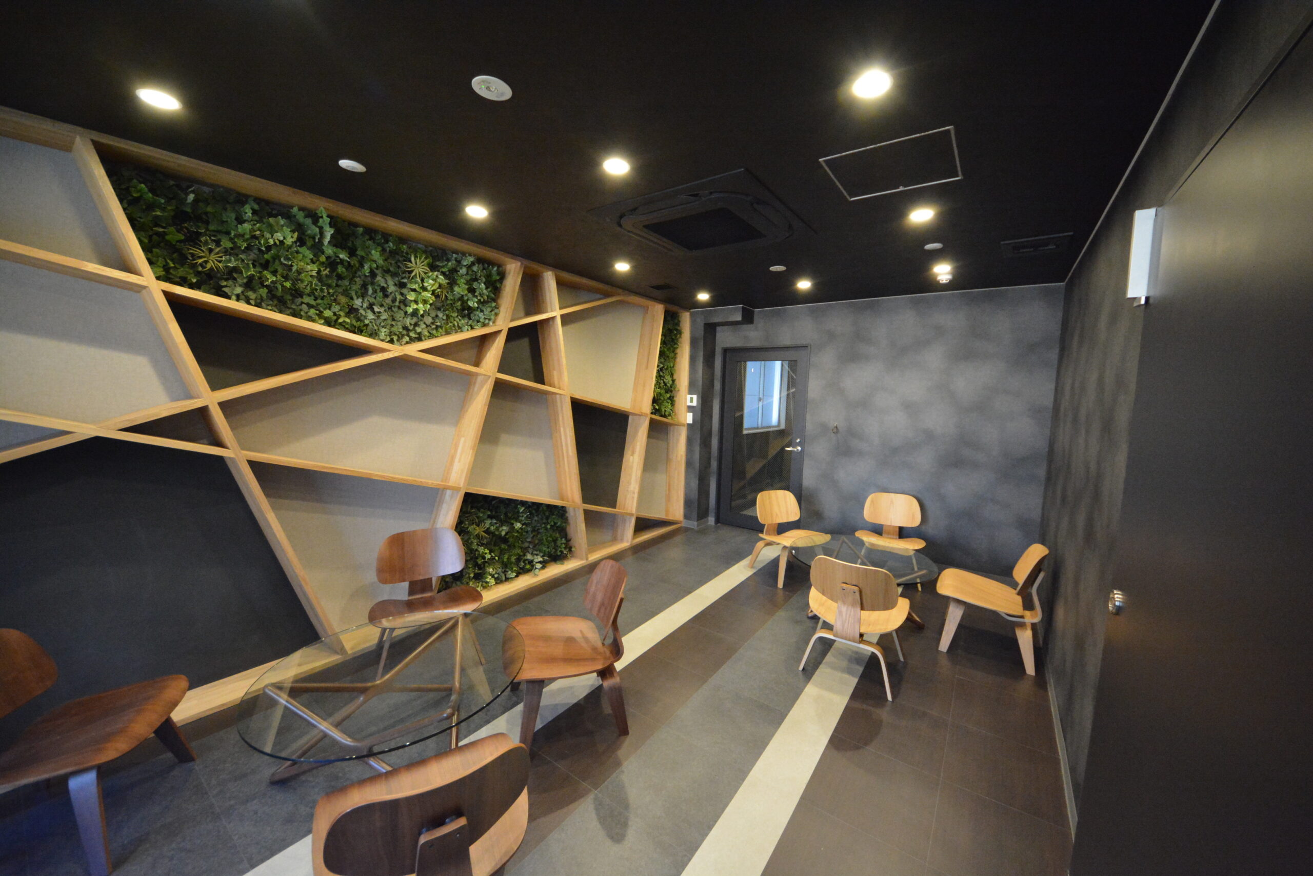 各階のEV・階段室脇の奥行きの小さなスペースは専有部としては使い勝手が悪いため、会議室やラウンジ、喫煙室として計画し、「半共用部・半専有部」の要素を持ったスペースとした。また、道路に面する1階の屋上を、ラウンジから連続する半屋外空間を「Air Garden」としてデザインし、モダンで抽象的な・絵画のような半屋外空間に生まれ変わらせた。